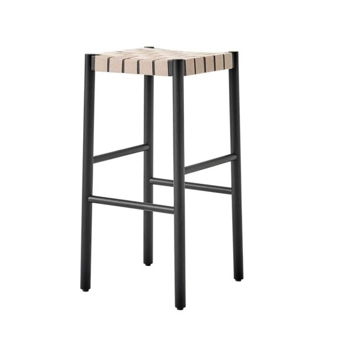 Betty Tk8 de &Tradition par Thau & Kallio. Nommé d'après le théâtre Betty Nansen de Copenhague, la structure robuste de ce tabouret est fabriquée en chêne ou en frêne laqué. Le siège palmé – dont les sangles sont fabriquées à partir de fibres de lin naturelles et tissées à la main – offre une base douce et rembourrée.
