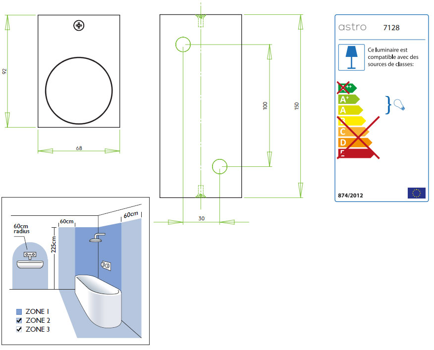 Ampoule LED 6W max GU10 (non fournie)