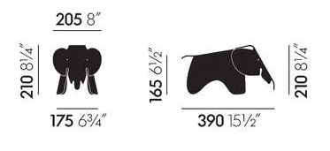 En 1945, Charles et Ray Eames ont créé un éléphant jouet en contreplaqué. Cependant, cette pièce n‘a jamais été produite en série. Une version de taille réduite, le Eames Elephant (small), réalisé en matière plastique robuste peut servir de jouet d‘enfant ou d‘objet décoratif dont l‘air sympathique ajoute une note charmante à tout environnement.