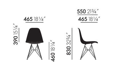 Avec son piètement à quatre pieds en tube d'acier, la DSX (Dining Height Side Chair X-Base) est la version la plus sobre du siège classique de Charles et Ray Eames.
