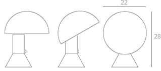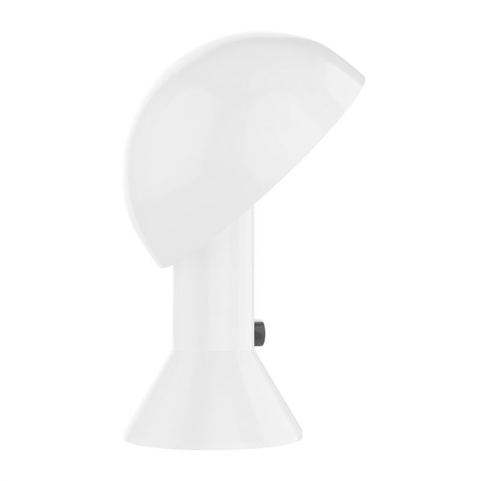 Elmetto est une magnifique lampe de table avec lumière directe et indirecte avec une structure entièrement en résine blanche. Cette lampe se compose d'un tron très stable et d'un diffuseur réglable avec une forme hémisphérique. Elmetto, dessinée par Elio Martinelli en 1976, en dépit de sa conception exacte, favorise la fonctionnalité de l'utilisation d'un commutateur de grande taille sur le corps central, facile à trouver même dans l'obscurité, et un réflecteur qui, par une simple pression avec le doigt, permet de régler la source de lumière.