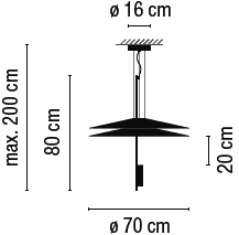 Matériaux : diffuseur en méthacrylate, abat-Jour en acrylique, corps en aluminium, patère et tiges en acier