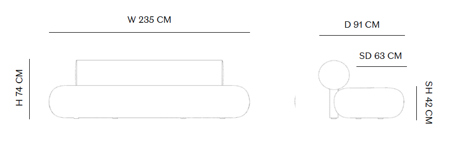 L 235 x Prof. 91 x H 74 cm