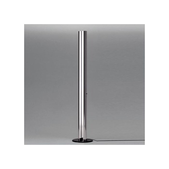 Ce lampadaire classique au design intemporel des années 70 se distingue par sa répartition de la lumière réfléchie indirectement. Son pied droit est en acier enrobé d'une résine synthétique thermoplastique, et la tige est en aluminium anodisé brillant ou laqué noir avec régulateur d'intensité lumineuse. Ce lampadaire offre une touche épurée à votre intérieur. La lumière émane dans votre intérieur tout en étant minimaliste et design.