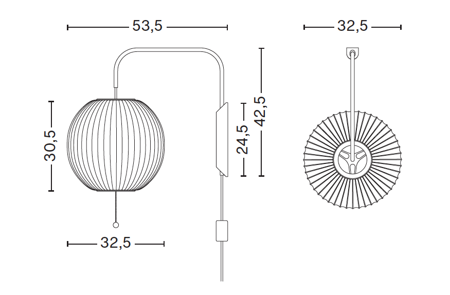 L'applique murale Nelson Ball fait partie de la série Nelson Bubble Lamp. Un support mural en noyer et un bras en acier suspendent l'abat-jour sphérique et permettent à la lampe de remplir n'importe quel intérieur d'une lumière chaude et diffuse. Le bras de la lampe peut être ajusté de gauche à droite et de haut en bas sans avoir à changer sa position sur le mur.