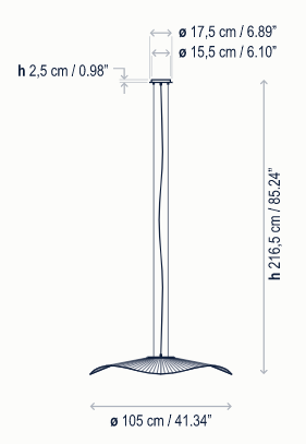 H 216,5 x diam. abat-jour 105 x diam. base 17,5 cm