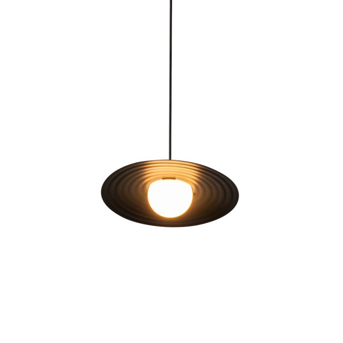 Matériaux : Verre soufflé opalin brillant avec support en polycarbonate injecté, finition laquée noir mat