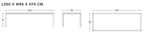 L 250 x larg. 95 x H 74 cm