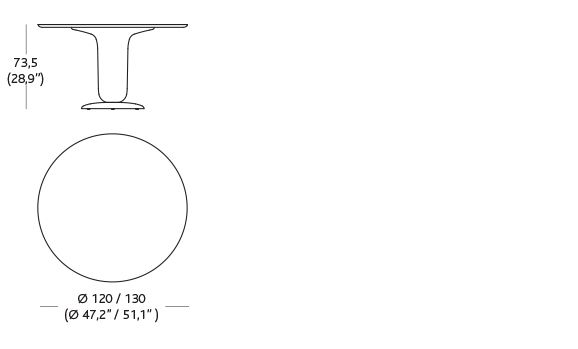 Matériaux : structure intérieur en acier peint, pied central et base en fibre de verre avec finition brillant (gel renforcé pour la durabilité), plateau en MDF laqué finition Fenix mat ou en plateau en verre trempé