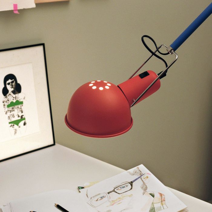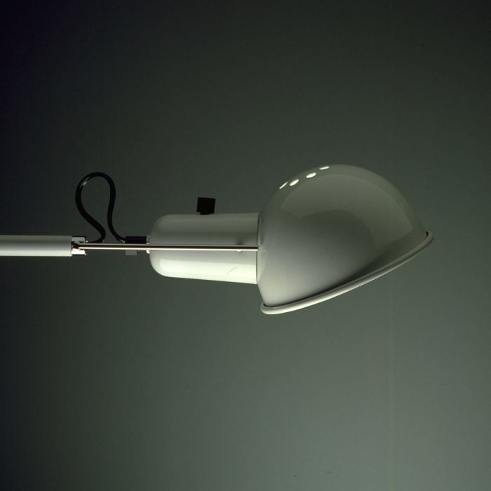 Applique à lumière directe. Réflecteur, bras orientable et attache murale en acier recouvert d’un vernis liquide. Support de réflecteur en laiton chromé. Contre-poids conique en fonte.