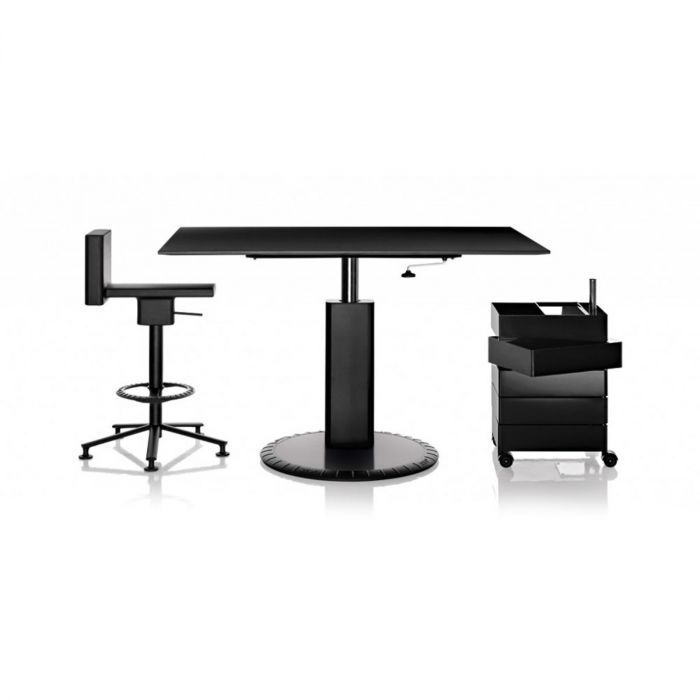 Véritable table d’architecte 360° table de la marque Magis, par Konstantin Grcic. La 360° table est réglable en hauteur, de 73 à 95 cm.