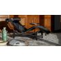 Conçue en 1928 et devenue célèbre à partir de 1965 grâce à Cassina, la Chaise longue à réglage continu est la chaise longue par excellence : la forme de la détente, née de la volonté des trois créateurs de placer l'homme au centre de l'attention, grâce à la correspondance entre la forme et la fonction du repos, dans un équilibre parfait entre pureté géométrique et corporéité. Ce siège est développé avec des matériaux circulaires dans un souci de durabilité. Le rembourrage est en fibre de polyester et l’appui-tête en ouate soufflée de PET recyclé. L'intérieur du matelas est dorénavant fixé par du velcro, un détail qui facilite le désassemblage du produit.