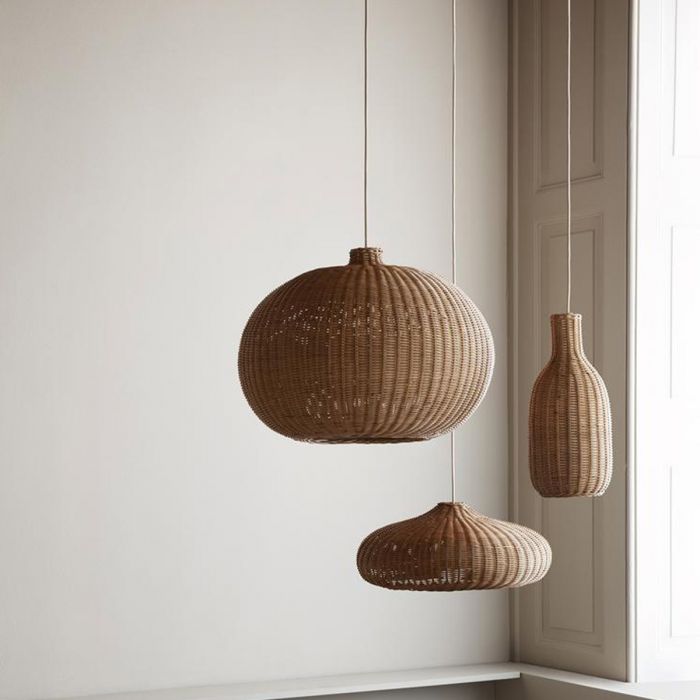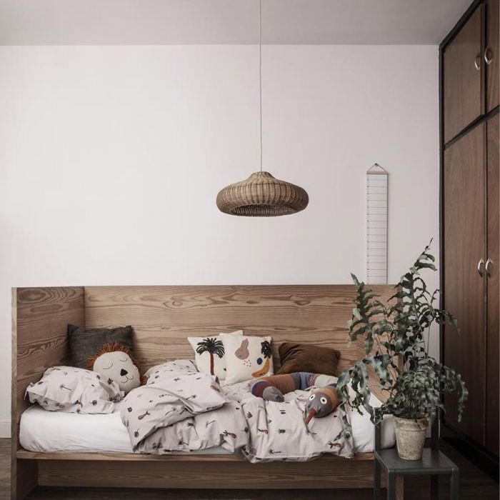 Ce grand abat-jour de forme organique est fait de rotin tressé et vous offre une belle source de lumière naturelle dans la chambre des enfants. L'abat-jour est livré avec un cordon recouvert de tissu et un auvent en plastique assorti.