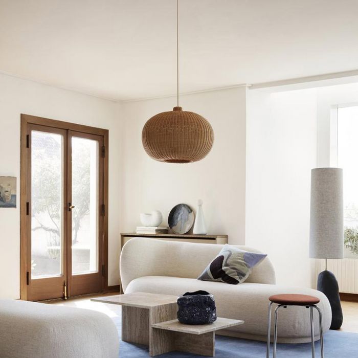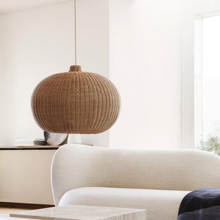 Ce grand abat-jour bombé est tressé à la main en rotin et fournira une belle source de lumière naturelle dans une pièce. Que vous l'accrochiez au plafond au-dessus de votre table à manger ou que vous l'utilisiez comme point focal dans un coin, la lampe laisse de petits aperçus de lumière à travers son ombre naturelle, tandis que le trou inférieur donne une lumière plus dirigée vers le bas. Il est livré avec un cordon recouvert de tissu et un auvent en plastique assorti.