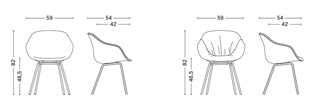 L'AAC 227 fusionne l'esthétique épurée et élégante du cadre en acier à quatre pieds avec la douceur de la coque rembourrée. Retenant l'idée fondamentale partagée par la famille AAC, ce modèle se caractérise par une coque incurvée avec un dossier légèrement plus haut. Conçue avec une fonctionnalité optimale à l'esprit, la construction de la coque offre une assise profonde et généreuse qui combine une esthétique accueillante avec un haut niveau de confort, tandis que les accoudoirs inférieurs offrent un bon soutien et permettent à la chaise de se glisser sous une table ou un bureau. La base fonctionnelle présente des pieds inclinés légèrement vers l'extérieur pour une stabilité optimale et est disponible dans des finitions enduites de poudre noire et chromée, avec la coque offerte dans une variété d'options de rembourrage régulières et matelassées.