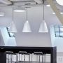 La suspension émet une lumière vers le bas douce et confortable. La forme conique et l’intérieur dépoli peint en blanc assurent une distribution homogène de la lumière. L’ouverture sur le dessus de la suspension offre un éclairage décoratif de la partie supérieure voûtée de l’abat-jour : une fois allumée, la suspension conserve toute l’expression de la forme visuelle qu’elle arbore lorsqu’elle est éteinte.