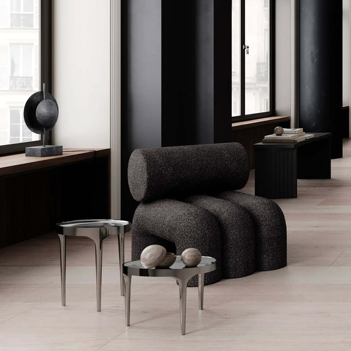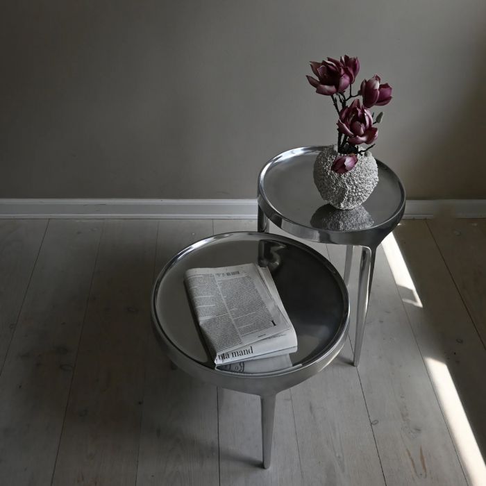 Fabriquées en aluminium poli avec une superbe finition chromée, ces tables présentent une surface semblable à un miroir qui apporte une esthétique saisissante et moderne à n'importe quel espace. également disponible avec la finition antique brûlée peinte à la main, avec une surface brute et non polie, mettant en valeur une lueur subtile et chaleureuse. Avec un design raffiné et un attrait polyvalent, les tables Phantom rehaussent parfaitement n'importe quel intérieur.