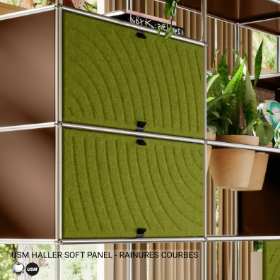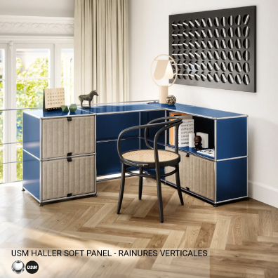 Conçu pour anticiper l'inconnu et s'adapter avec agilité, le système USM Haller porte le changement dans son ADN. Plus qu’un mobilier, c’est une philosophie du design qui traverse les époques et séduit chaque nouvelle génération. USM Haller stimule l’imagination, éveille l’instinct créatif et invite à l’expérimentation. Créé pour évoluer, il affirme sa valeur durable au fil du temps. Les Soft Panels multiplient les possibilités de personnalisation : un véritable terrain de jeu pour les amateurs de design et de créativité.