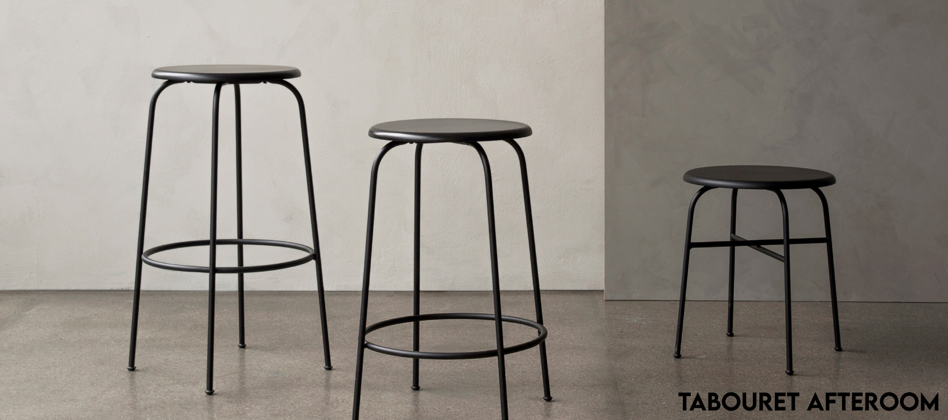 Avec des lignes épurées caractéristiques et une base robuste fabriquée en acier tubulaire enduit de poudre noire attachée à des barres transversales, le tabouret Afteroom est disponible avec un siège en contreplaqué peint ou avec des tissus d'ameublement luxueux dans une gamme de belles textures et couleurs. Le tabouret est disponible en trois hauteurs – tabouret, tabouret de comptoir et tabouret de bar – ce qui permet de le glisser facilement contre un bar ou de l'utiliser comme petit espace ou comme siège supplémentaire. Conformément au design original de la chaise Afteroom, ce tabouret sera certainement adopté par ceux qui cherchent à améliorer les sièges de leurs espaces commerciaux ou résidentiels.