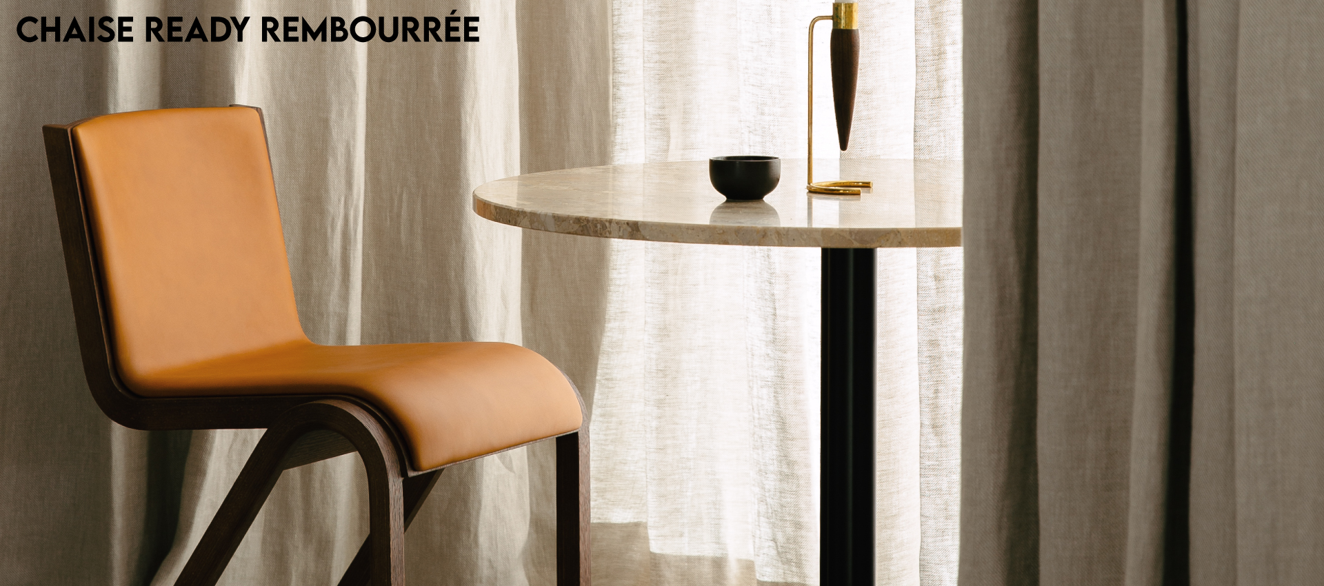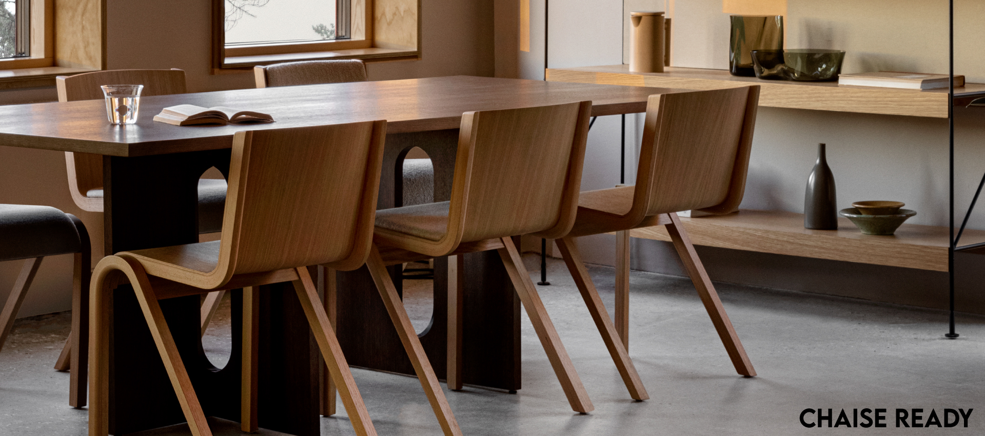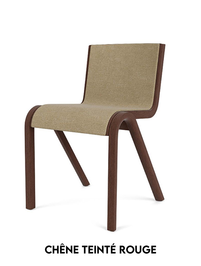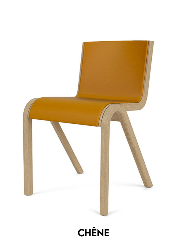 Fruit d'une étude des possibilités des techniques de pressage de forme, Ready Chair, créée pour Audo par Matias Møllenbach et Nick Rasmussen, s'inspire des modèles classiques de chaises à oscillation libre, son siège et son dossier en porte-à-faux semblant suspendus dans l'air. Disponible en placage chêne, il est livré avec une finition chêne naturel ou teinté rouge et avec l'option d'une assise et d'un dossier rembourrés. Parfaitement dimensionnée pour être utilisée comme chaise de salle à manger, sa conception empilable et sa fonction de connexion en rangée la rendent également adaptée à une multitude d'autres utilisations.