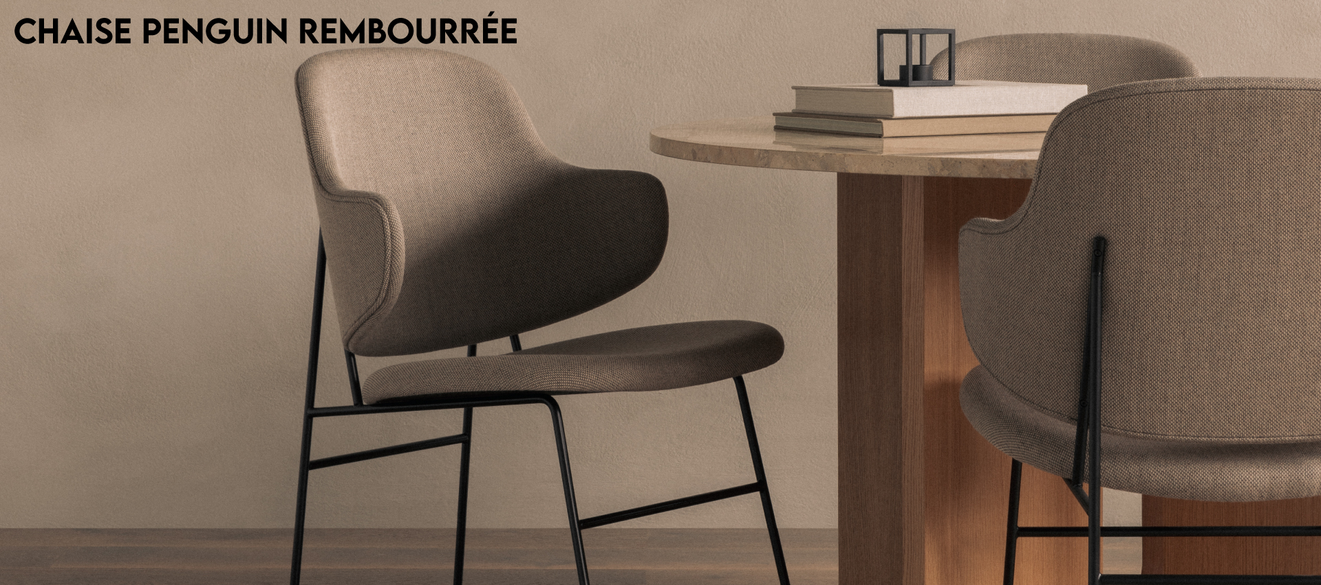 Conçue en 1953 par Ib Kofod-Larsen, la chaise de salle à manger Penguin est aujourd'hui considérée comme un chef-d'œuvre du milieu du siècle. Calme, harmonieux et conçu pour bercer le corps lorsqu'il est assis, le design simple du Penguin offre un niveau de confort remarquablement élevé, en tant que chaise à bascule, chaise de salle à manger et chaise longue. Le revêtement de l'assise et du dossier assure un soutien supplémentaire tout en donnant une nouvelle expression au célèbre design.