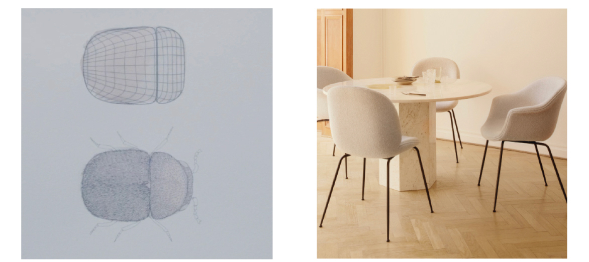 « Sa ligne libre, organique mais précise est ce qui rend la Beetle Chair unique. Chaque fois que nous le voyons réinterprété dans des projets internationaux prestigieux, c'est un honneur inattendu. Mais ensuite, nous avons passé près d'une décennie avec, et cette ligne, qui coule harmonieusement dans l'espace, parvient toujours à nous charmer. » GAMFRATESI