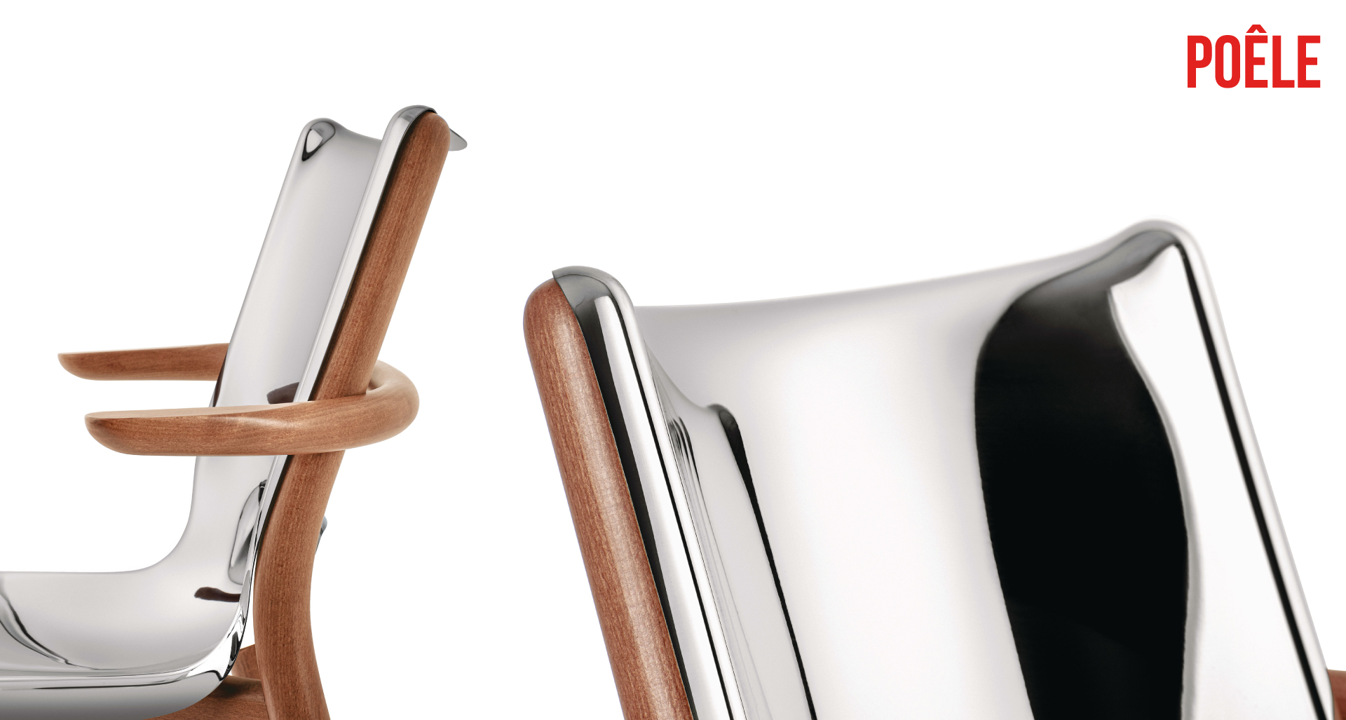 "La Chaise Poêle a commencé comme une blague sérieuse, avec un croquis d'une poêle avec des jambes et l'idée géniale d'adapter une haute technologie existante à des fins différentes. L'assise et le dossier inspirés d'une poêle à frire, les pieds en guise de poignées, la Poêle Chair incarne avec élégance les plus beaux symptômes de l'intelligence humaine : l'humour et la technologie. À l'image de ma relation avec Alberto et Alessi."_ Philippe Starck