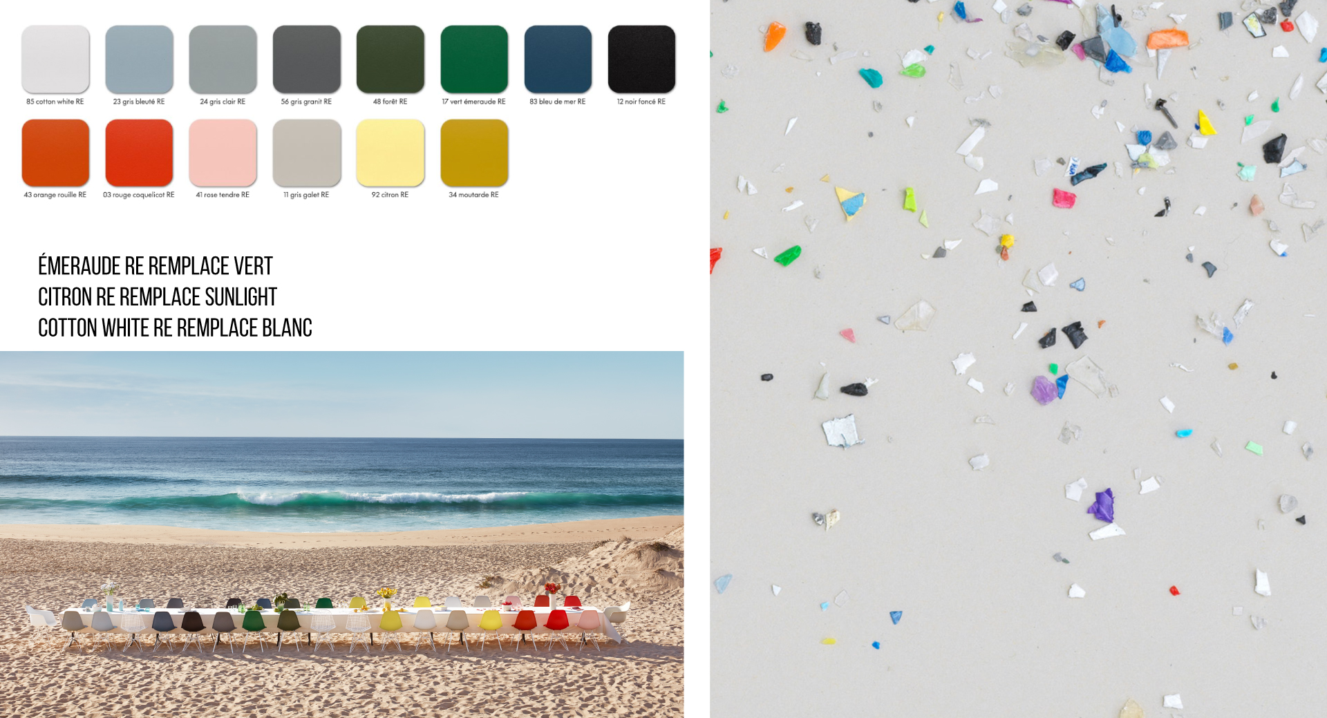 La Eames Plastic Chair RE vient s’ajouter à la liste des produits Vitra désormais fabrigués à partir de plastique recyclé, comme la Tip Ton RE et la Toolbox RE.