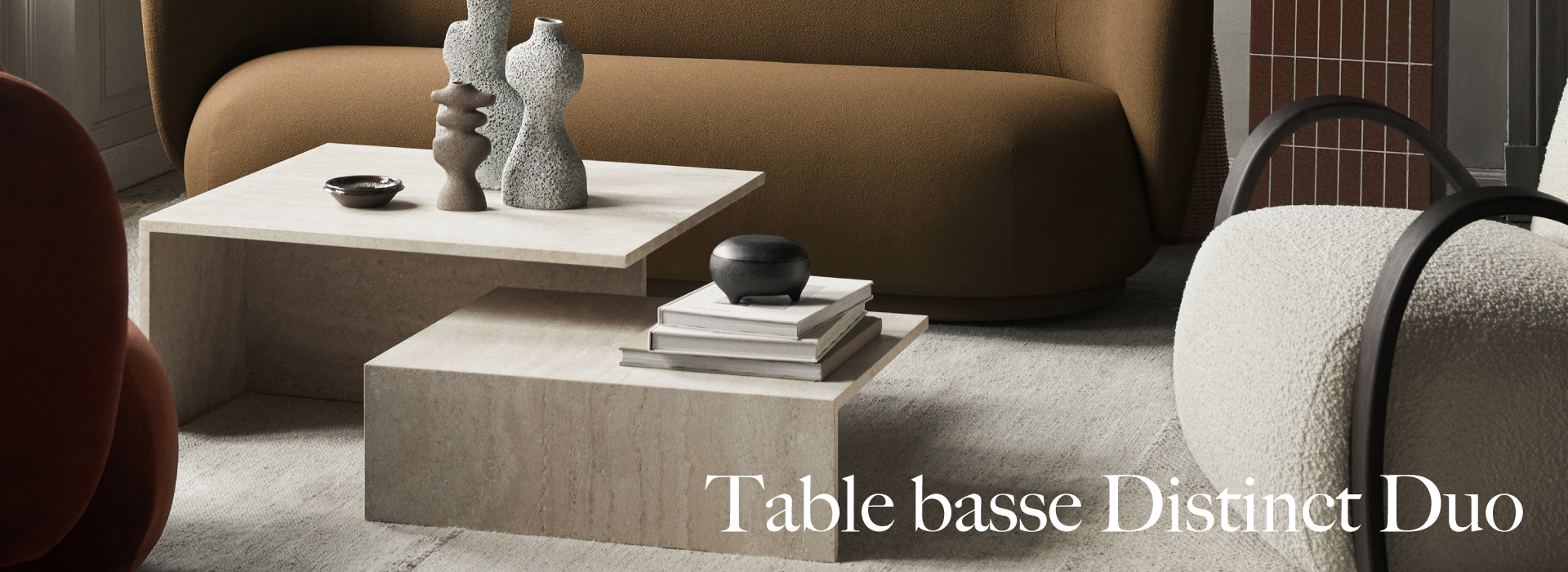 S’inspirant du minimalisme japonais, les tables Distinct Grande Duo explorent la création de structures complexes à partir d’un seul élément. Composé de deux tables distinctes qui forment une pièce cohérente à différents niveaux lorsqu’elles sont utilisées ensemble, ce duo peut aussi être utilisé séparément dans votre maison : c’est à vous de choisir. Entièrement réalisée en travertin, la construction minimaliste de ces tables contraste avec la richesse de la texture terreuse de la pierre, soulignant ainsi leur expression architecturale.
