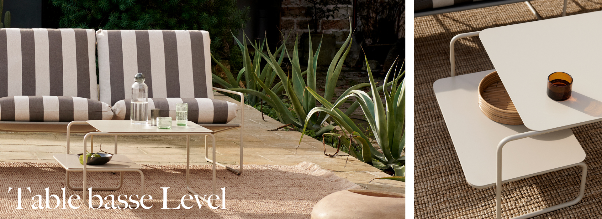 Avec son profil asymétrique intrigant, la table basse Level se caractérise par son cadre distinctif fait une seule ligne continue. Avec son expression moderne et ses deux niveaux qui offrent une grande surface, la table est idéale pour compléter soit votre espace lounge extérieur, soit votre salon. La table basse est fabriquée en acier enduit de poudre et peut être utilisée à l’intérieur comme à l’extérieur.