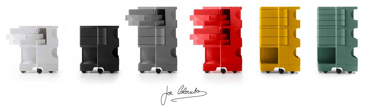 Sa carrière en tant que designer commence vraiment en 1962 quand il vient à ouvrir son propre studio de design à Milan. Accompagné de son frère Gianni Colombo, il crée le luminaire Acrilica et le fauteuil Elda. Au cours des années 60 il collabore avec les plus grandes maisons comme Kartell, Zanotta ou encore O-luce et a été récompensé à plusieurs reprises par les prix du Compas d’or et du Premier Design International Award. Son oeuvre est pensée pour l’utilisateur. Le chariot Boby est conçu pour proposer une réponse multifonctionnelle au besoin de rangement. Le Boby est un meuble à roulettes que l’utilisateur peut configurer comme il le souhaite. Trouver le modèle Boby qu’il vous faut à travers ces 10 modèles.