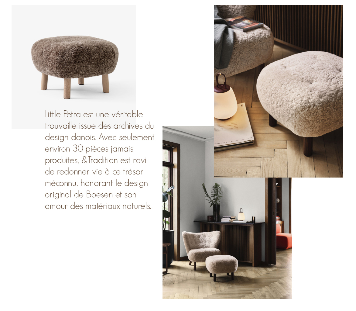 Little Petra est l'une des rares conceptions de l'architecte Viggo Boesen, qui s'est associé à l'esthétique du design emblématique du Danemark dans les années 1930, appelée style funkis. Distingué par une esthétique organique plus douce, plus abondante qui défiait l'approche minimaliste du Bauhaus.