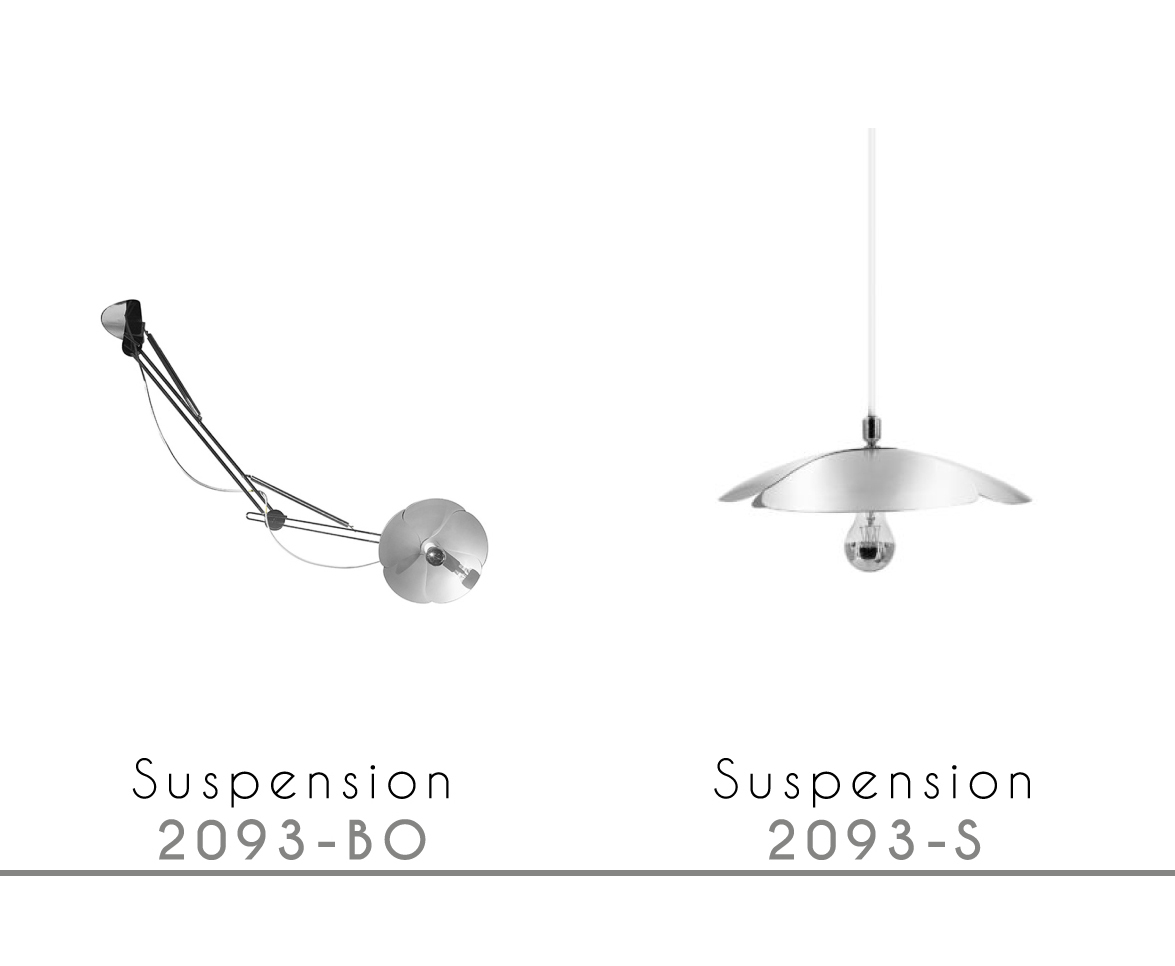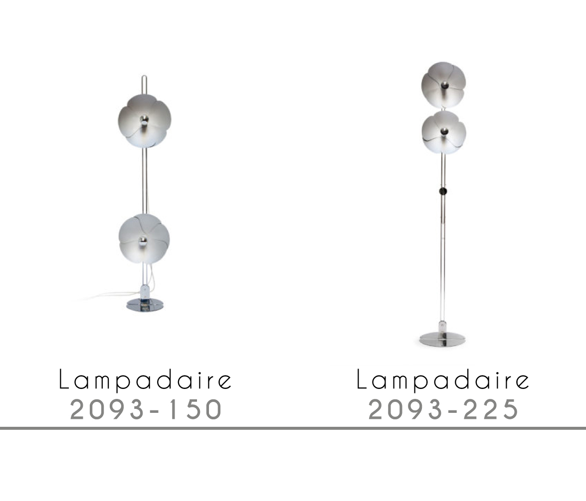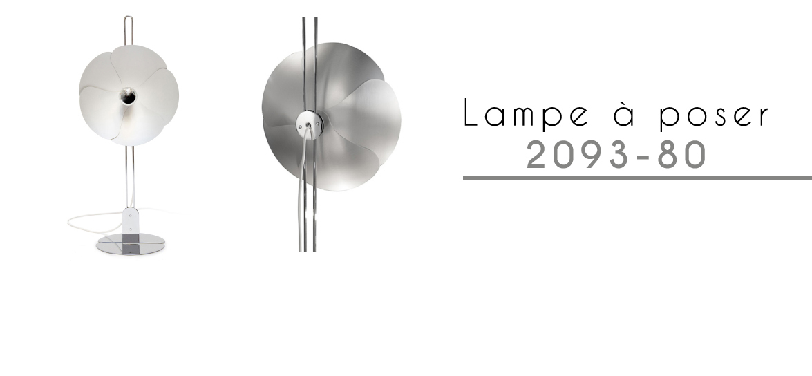 En 1967, Olivier Mourgue invente un appareil d’éclairage en forme de fleur en pétales d’aluminium fixé sur deux fils en métal chromé pour donner des appliques, des plafonniers, des lampes ou des lampadaires. Il utilise cette nouvelle ampoule de l’époque dotée d’une calotte argentée qui permet de produire une lumière réfléchie et donc un éclairage de très belle qualité.