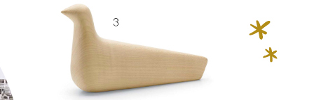 1. Lady dog ARTYPOPART 99€ | 2. Eames Elephant small VITRA 79€ | 3. Oiseau bois VITRA 105€ | 4. Mini-Kangy ARTYPOPART 99€