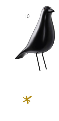 9. Mini-Deniro et Deniro ARTYPOPART 99€ et 299€ | 10. House bird VITRA 169€ | 11. Boules de Noël x5 ALESSI 60€