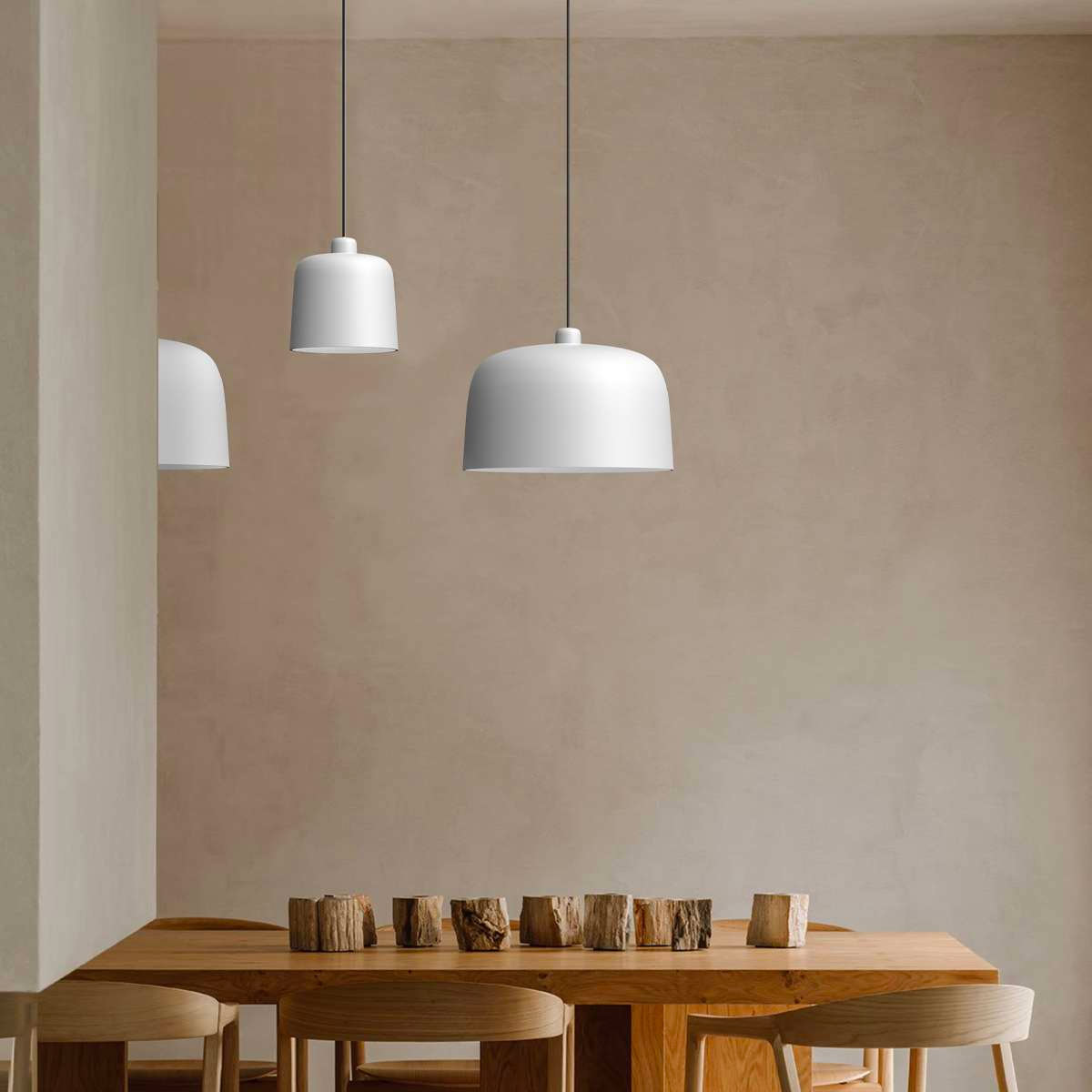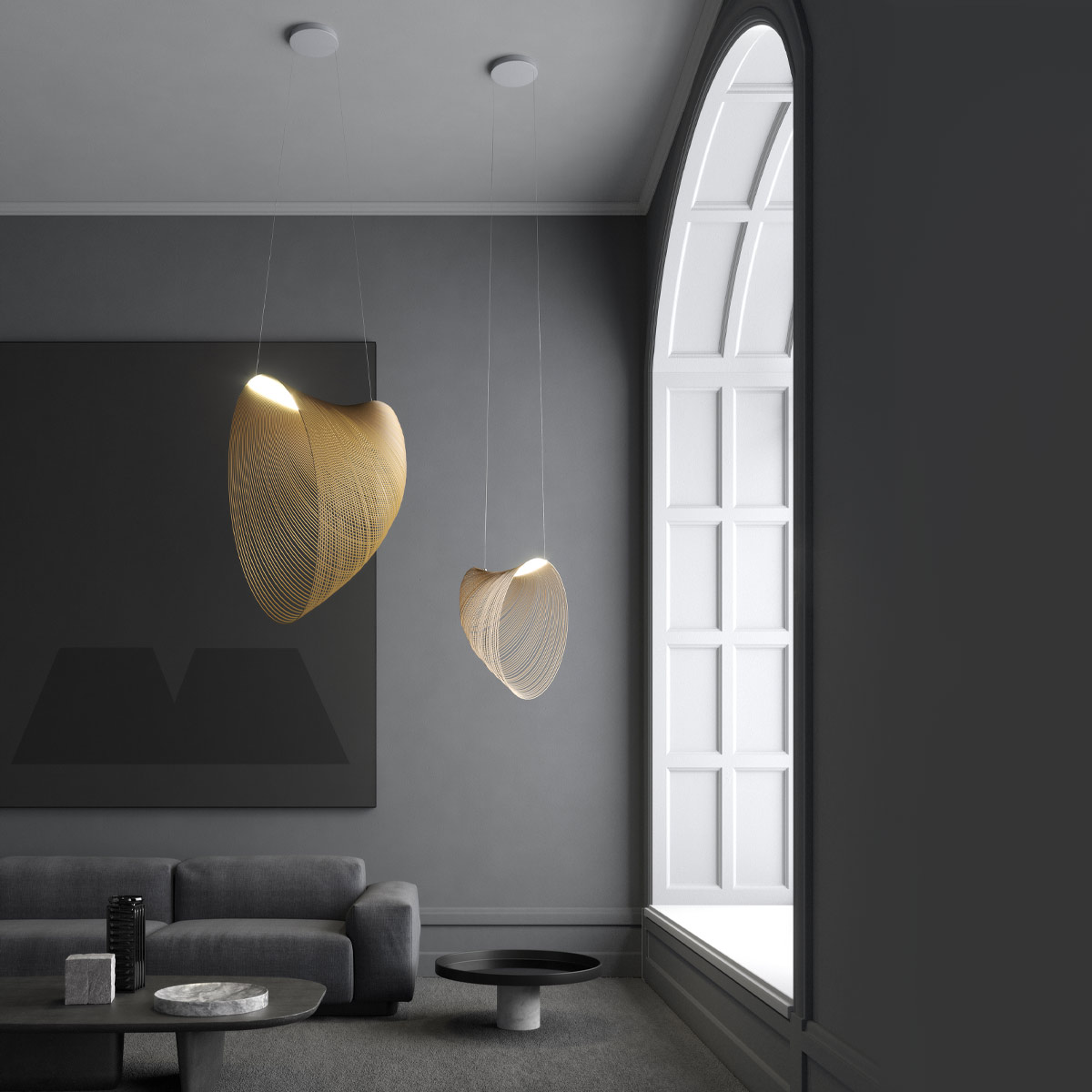 L'innovation technologique et la recherche sur les matériaux se fondent harmonieusement dans la suspension Illan de Luceplan, le projet de la jeune designer hongroise Zsuzsanna Horvath. Le caractère décoratif de la lampe est souligné par un choix original de matériaux : avec son design aérien, la pièce est composée d'un corps très léger obtenu à partir de contreplaqué découpé au laser aux lignes équidistantes, suspendu au plafond. La lampe, disponible en plusieurs tailles jusqu'à un mètre de diamètre, prend du volume par gravité, en prenant sa forme caractéristique, flottant dans l'air. Tout autour, une source lumineuse à LED crée une lueur diffuse très confortable et relaxante.