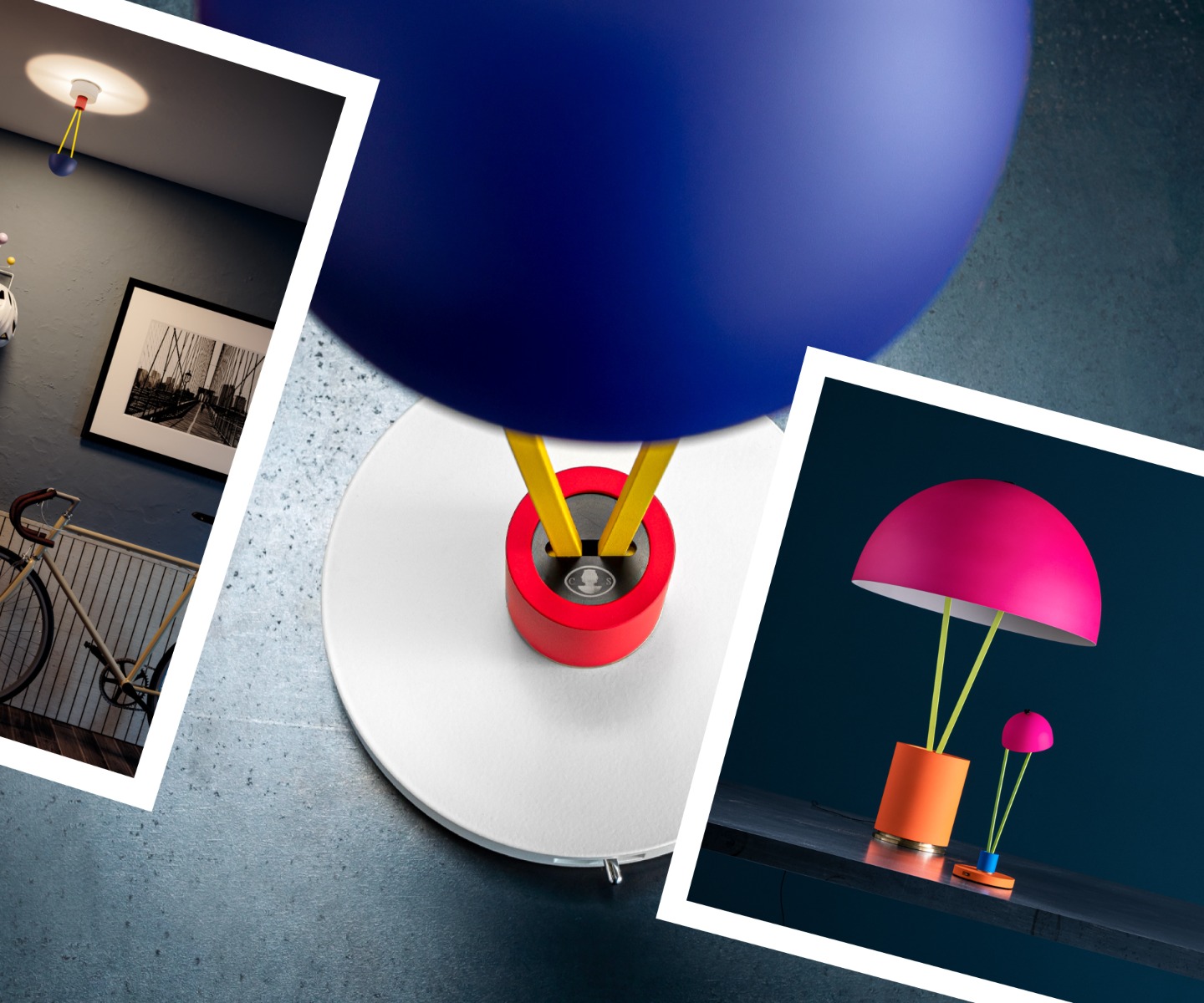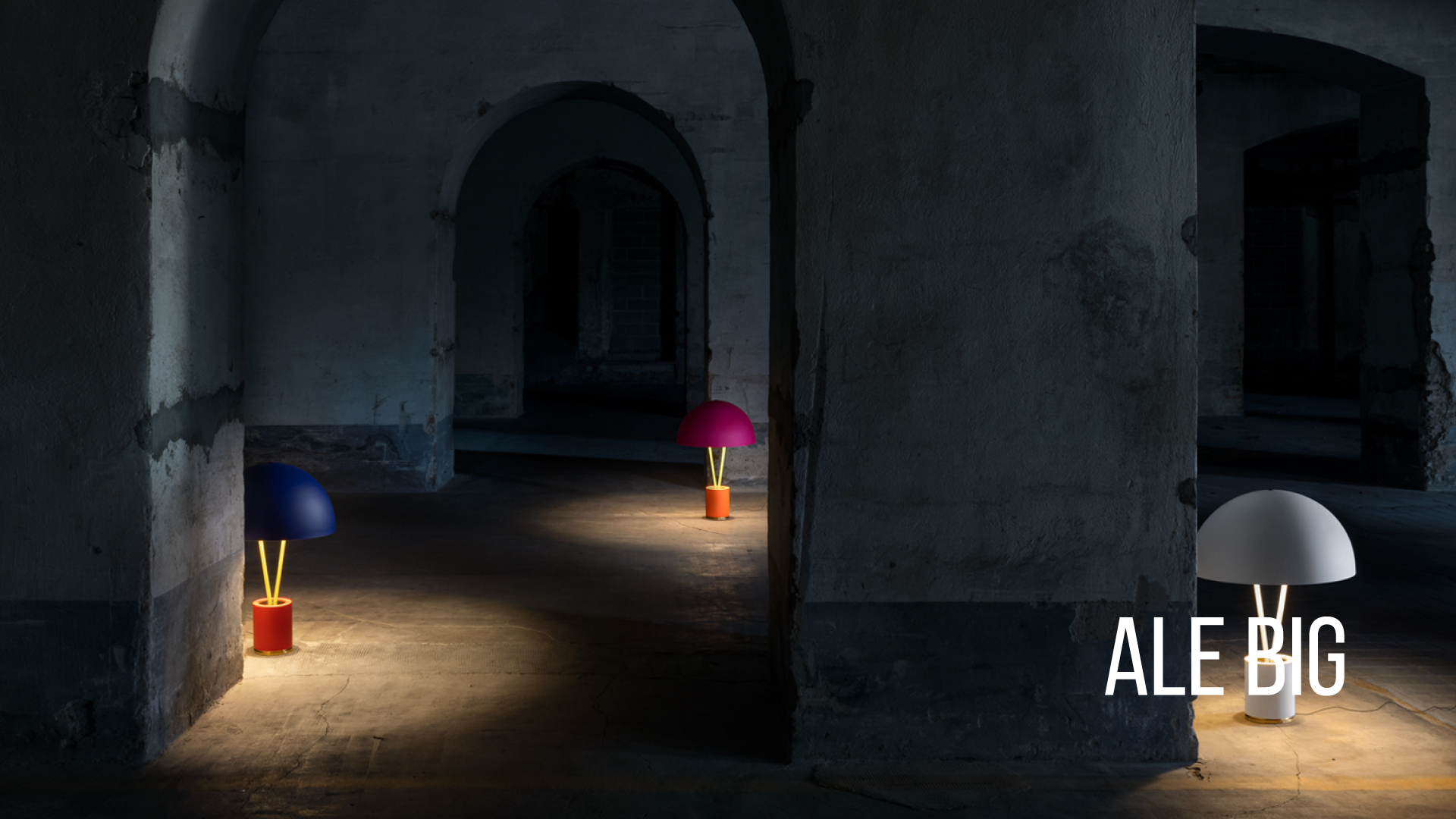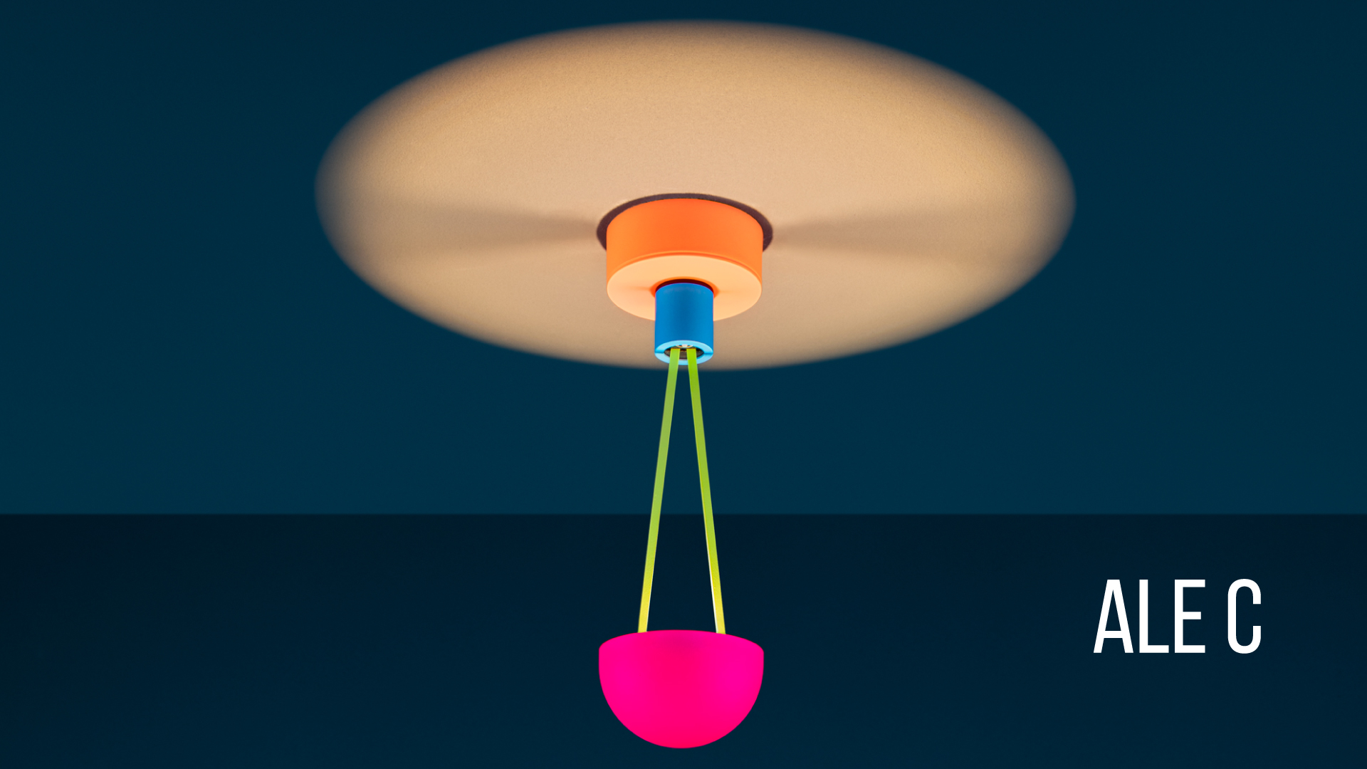 “C’est en 2004 que la couleur fit sa première apparition dans notre catalogue. La collection s’appelait Postkrisi. La couleur, symbole de renaissance, de joie. Aujourd’hui, cette couleur retrouve sa place. » Bleu, jaune, rouge et aussi des teintes fluorescentes comme magenta, jaune, bleu, orange ont étés choisies pour coupoles, tubes, bases et détails, donnant une touche vivante à l’environnement. La demi-sphère devient l’élément caractéristique de la nouvelle ligne Ale, disponible dans quatre versions, toutes caractérisés par le détail ironique de la mouche posée sur la coupole.