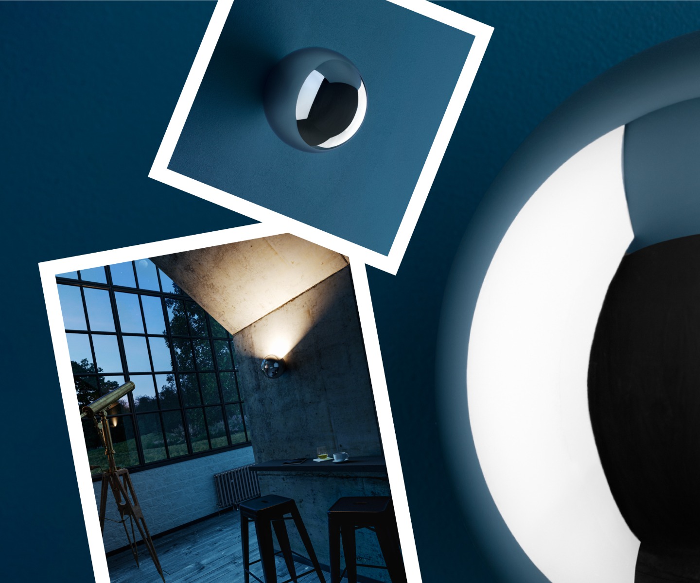 La version murale Ale W est la demi-sphère dans sa forme la plus pure. Il est possible d’éloigner la coupole du mur ce qui permet ainsi de varier le diamètre du bord lumineux généré par la carte DEL.