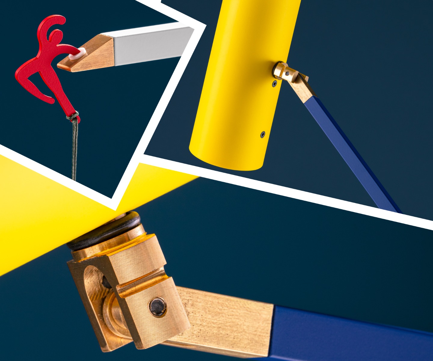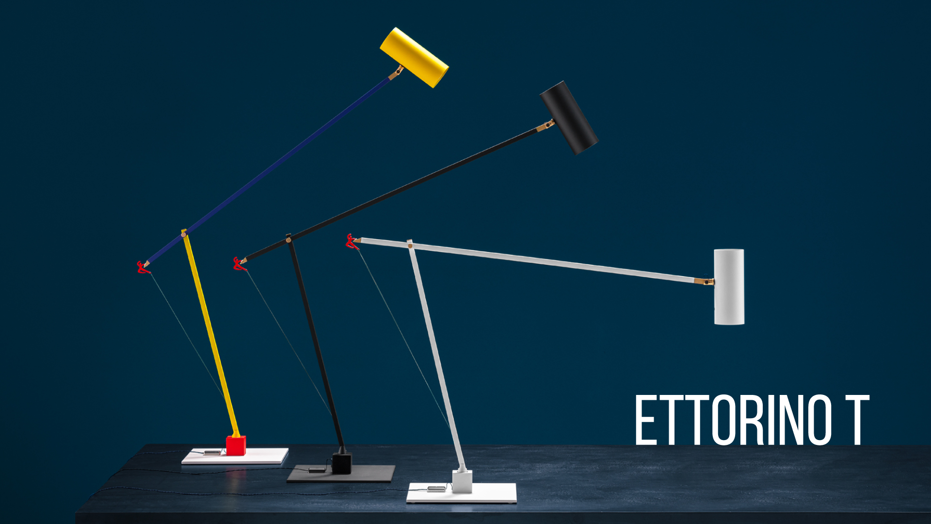 “C’est en 2004 que la couleur fit sa première apparition dans notre catalogue. La collection s’appelait Postkrisi. La couleur, symbole de renaissance, de joie. Aujourd’hui, cette couleur retrouve sa place. » Également disponibles dans les finitions classiques noire et blanche, les lampes Ettorino jouent dans la version « colourful » avec l’élégante combinaison de couleurs primaires, mêlant bleu, jaune et rouge. Précédées par le développement d’un système cinématique innovant et breveté, ces nouvelles lampes articulées se caractérisent par un design essentiel, personnalisé par des détails inattendus. La présence d’une silhouette rouge, détail fonctionnel à la forme dansante, caractérise toutes les lampes.