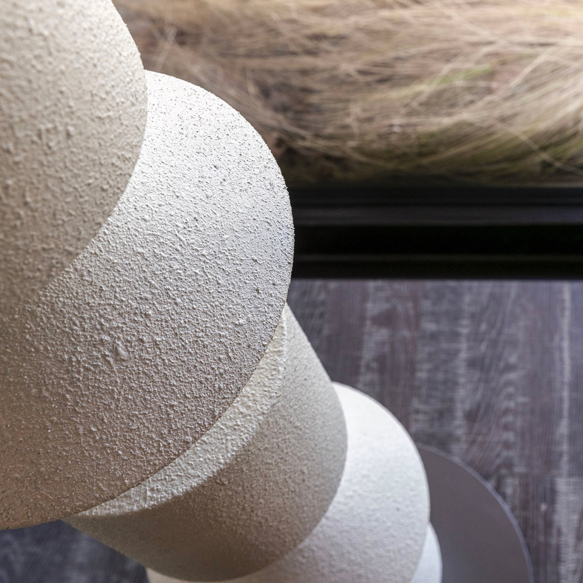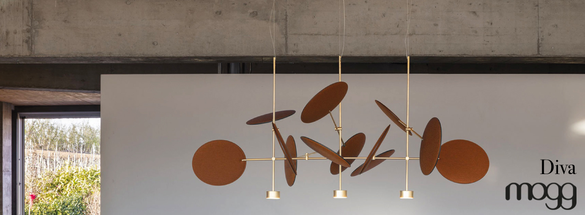 Lustre qui veut être le protagoniste de la salle à manger. Grâce à sa structure métallique élancée et ses éléments orientables aux propriétés insonorisantes, il capte l'attention et embellit l'atmosphère de la maison avec une forte personnalité.