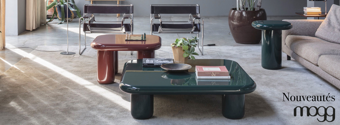 Tables basses caractérisées par des lignes douces, des formes simples et des volumes généreux. Décoratifs et fonctionnels, ils forment des archipels qui meublent l'espace domestique avec personnalité.