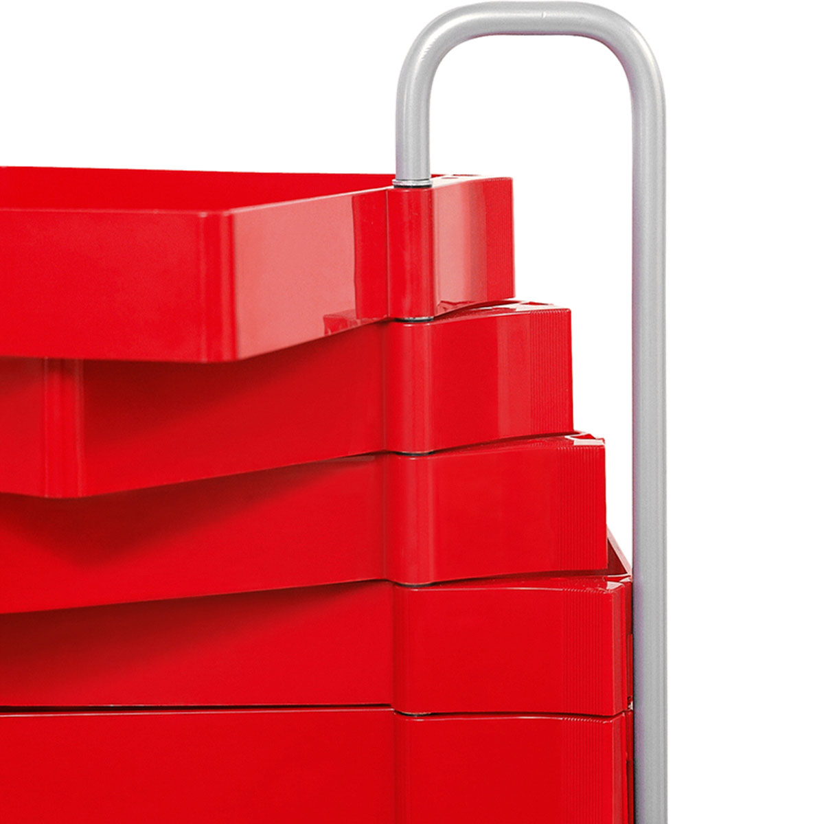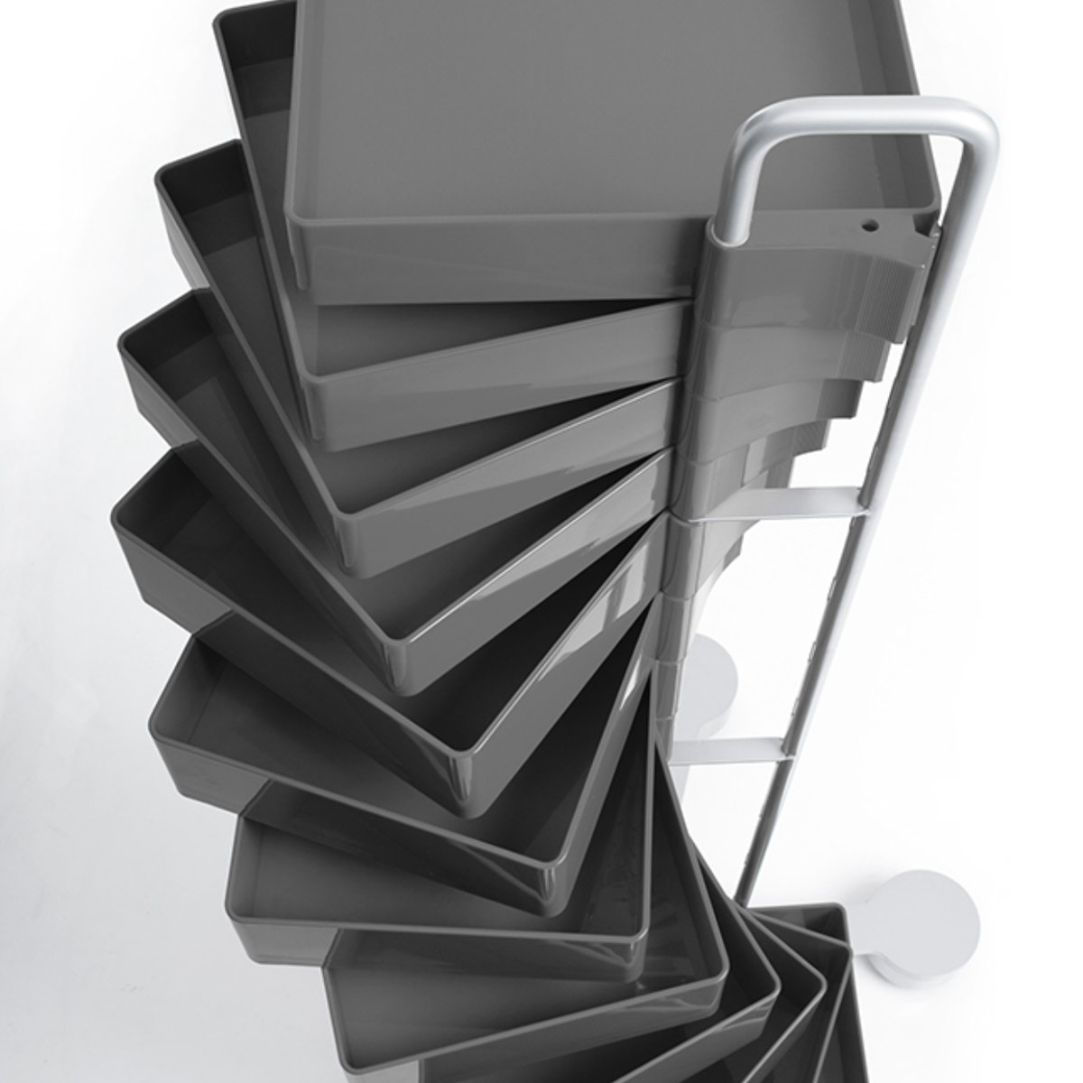 Icône historique du design, le chariot-armoire se distingue par son approche dynamique et sa grande flexibilité. Conçu pour garantir une composition verticale simple, il permet d'obtenir diffèrentes configurations avec des capacités personnalisées. La structure en ABS, composée de modules avec tiroirs et étagères, est montée sur 5 roulettes pivotantes en polypropylène et propose 4 solutions en termes de hauteur. Il fait partie de la collection permanente du MoMA de New York et de la Triennale de Milan, Prix Smau en 1971.