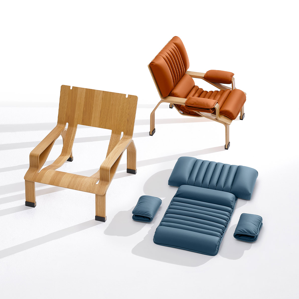 Le fauteuil Supercomfort conçu par Joe Colombo est le résultat d'une étude ergonomique méticuleuse sur la posture et a évolué à partir de l'idée d'utiliser une seule feuille de placage découpée et sans joints.