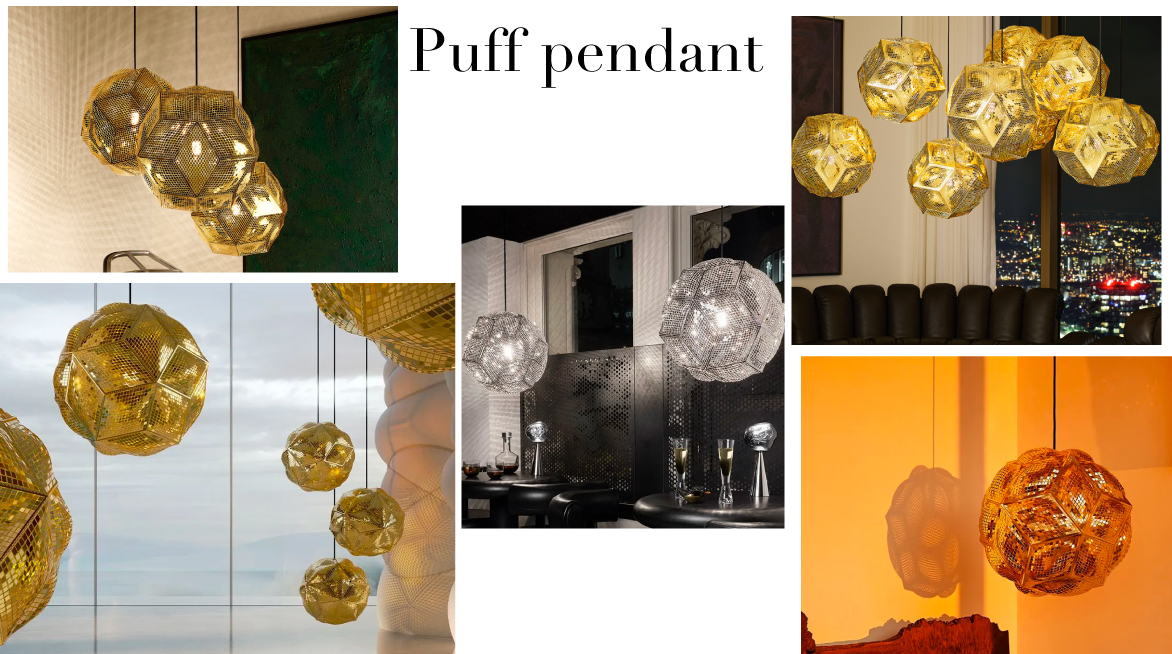 Inspiré de la géométrie gonflable, Puff est un objet polyédrique complexe composé de panneaux métalliques plats en forme de losange, expansés et gonflés comme s'ils avaient été gonflés grâce à leur motif incisé astucieux. Les panneaux gravés et perforés de Puff créent de petites facettes très réfléchissantes qui dispersent une myriade de réflexions internes, faisant de l'intérieur une boule disco inversée scintillante.