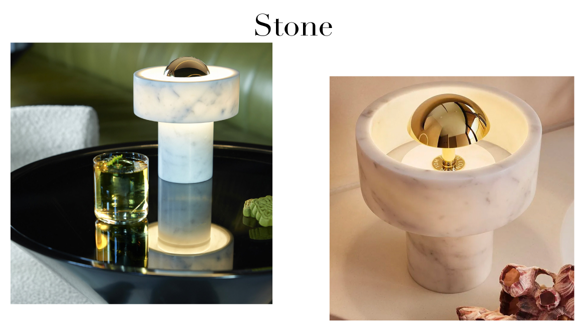 La pierre s'inspire de la matérialité du même marbre utilisé pour construire le Taj Mahal. La pierre dure et semi-précieuse porte une empreinte digitale unique - tactile, lourde et durable. La pierre est caractérisée par un anneau extérieur solide en marbre qui semble flotter autour de la source lumineuse, créant un effet de halo doux. Stone Portable LED a un variateur tactile intégré et offre jusqu'à 9 heures d'autonomie.