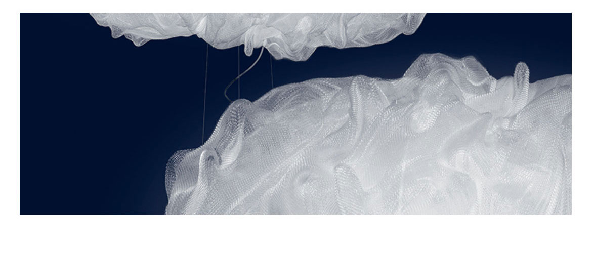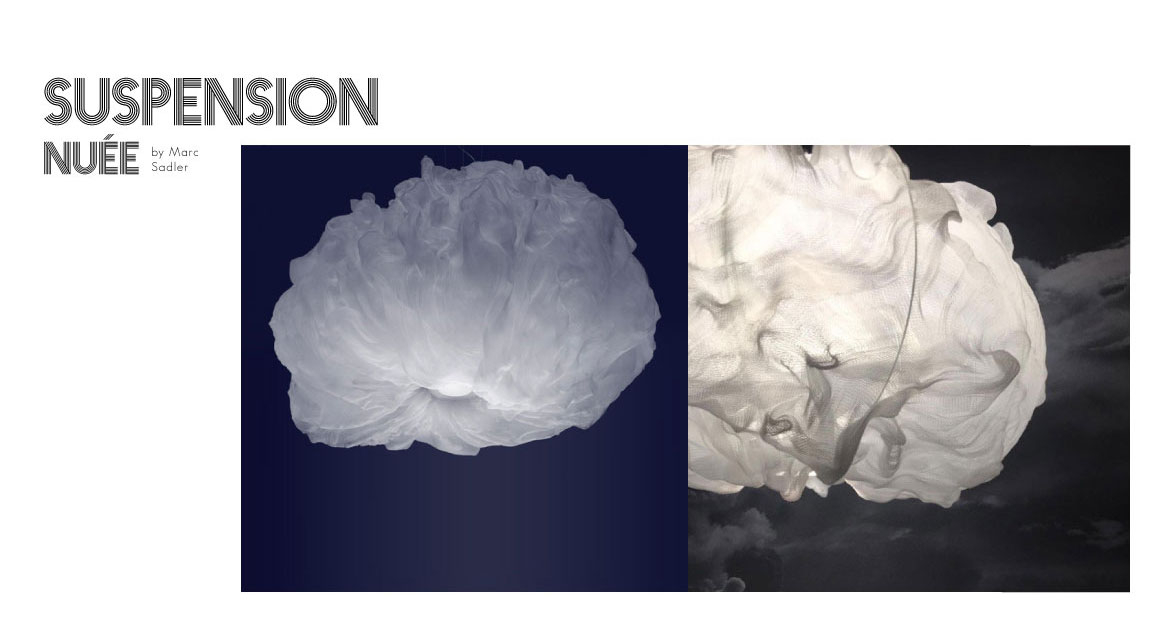 | La suspension NUÉE du designer Marc Sadler est empreinte d’une grande légèreté malgré ses dimensions imposantes. Cette volumineuse suspension évoque un cumulus léger flottant dans l’air. Elle est constituée de plusieurs couches de tissu technique superposées qui forment un volume aérien aux contours organiques. NUÉE arbore d'extraordinaires formes sculpturales irrégulières, caractérisées par d'innombrables plis, froissements, rondeurs et bosses. NUÉE propose un superbe jeu d'ombre et de lumière grâce aux différences d'épaisseurs du matériau au niveau des plis. La lumière traverse la matière de manière irrégulière et évocatrice, créant des zones d’ombres sur la surface blanche. Saisissant, cet incroyable jeu de clair-obscur évoque un nuage qui s’assombrit. La lumière se sculpte dans le tissu et semble respirer pour offrir une luminosité d'un autre genre, définitivement subtile. |