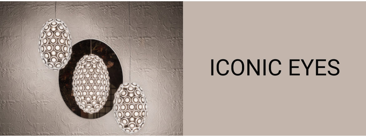 Le premier éclat de cette idée géniale a été inspiré par les phares automobiles emblématiques. Ils ont été modifiés afin de concevoir une grande suspension avec un impact puissant et élégant pour le foyer du Musée national bavarois en Allemagne. Le design oval du luminaire est moderne avec une touche classique. Il génère une ambiance éclatante précieuse renfrorcé par des anneaux de lumière brillante. Iconic Eyes est produite en deux différentes tailles. Glorieuse et stupéfiante en apparence, ce luminaire est composé de nombreuses lentilles et d'une constellation de LED.