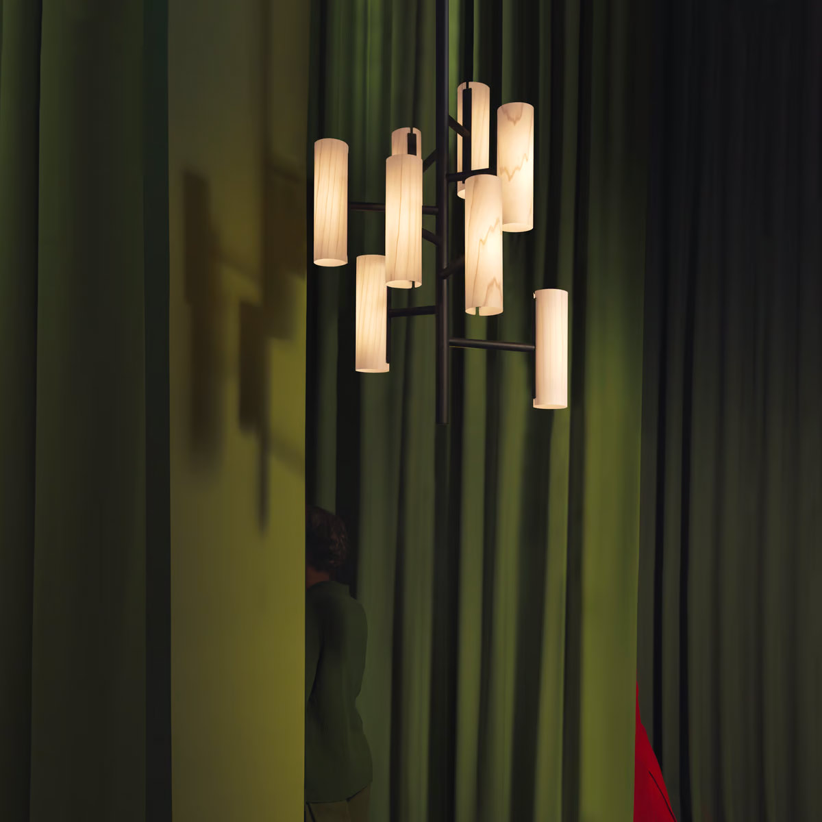 Conçue par Ramón Esteve, Black Note est une lampe architecturale dont les abat-jour perpendiculaires montent et descendent en harmonie. L'arrangement rythmique de Black Note s'inspire des touches noires d'un piano, leurs dièses et bémols utilisés pour ajouter un effet dramatique.