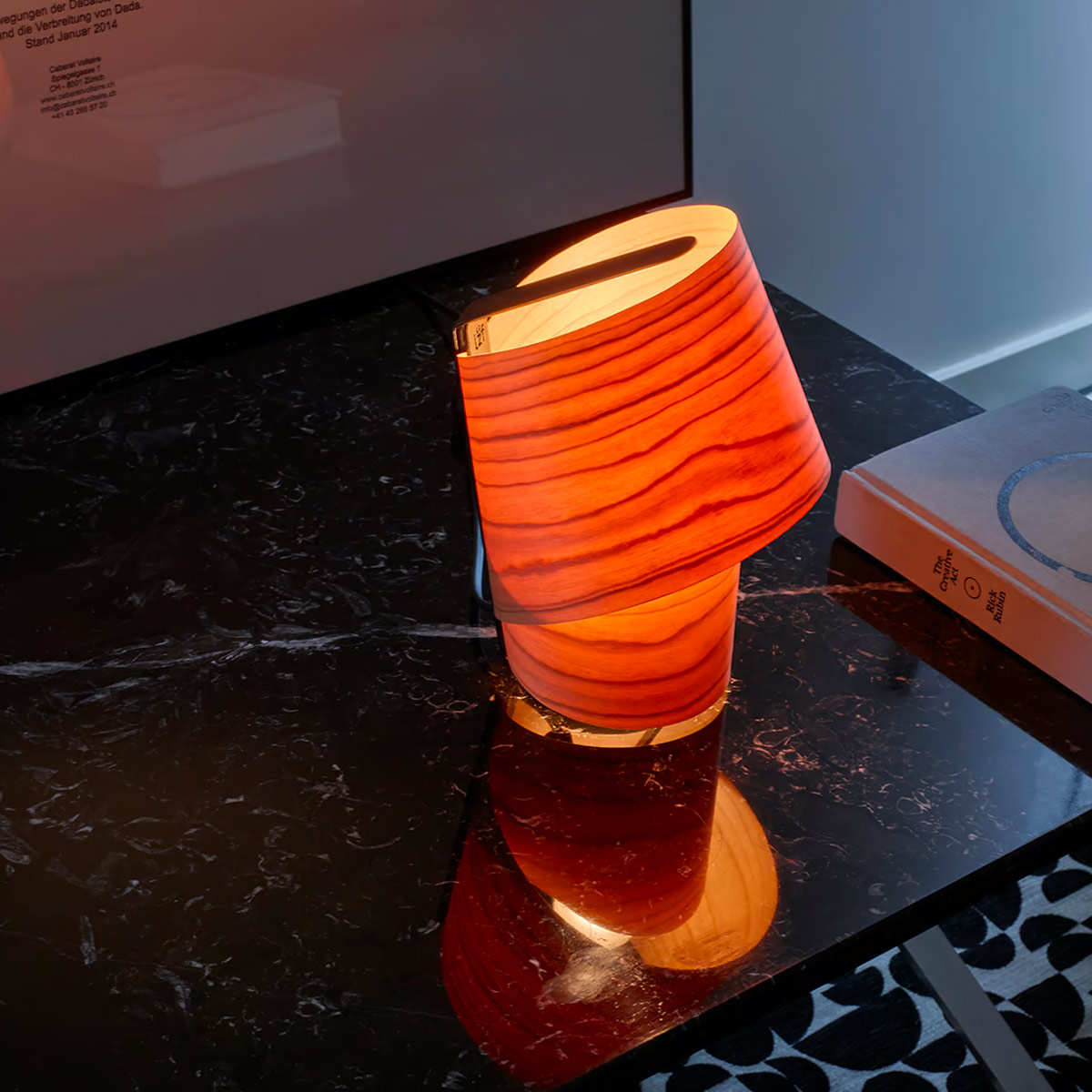 La lampe Minuscule (Tiny) de Ray Power est une lampe tout à fait modeste avec une silhouette classique. Fabriqué avec une seule bande de placage de bois, enroulée deux fois autour de la source de lumière, la joyeuse lampe Minuscule a une forme immédiatement reconnaissable.