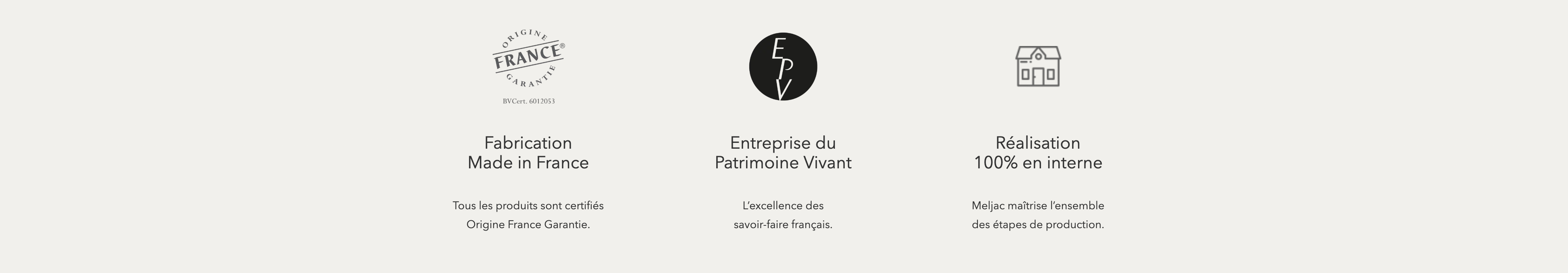 La qualité et la beauté des modèles Meljac dépendent tout d’abord du choix des matériaux. Laiton massif, verre trempé, porcelaine de Limoges, pierres semi-précieuses… ils garantissent la longue durée de vie des produits et une esthétique irréprochable.